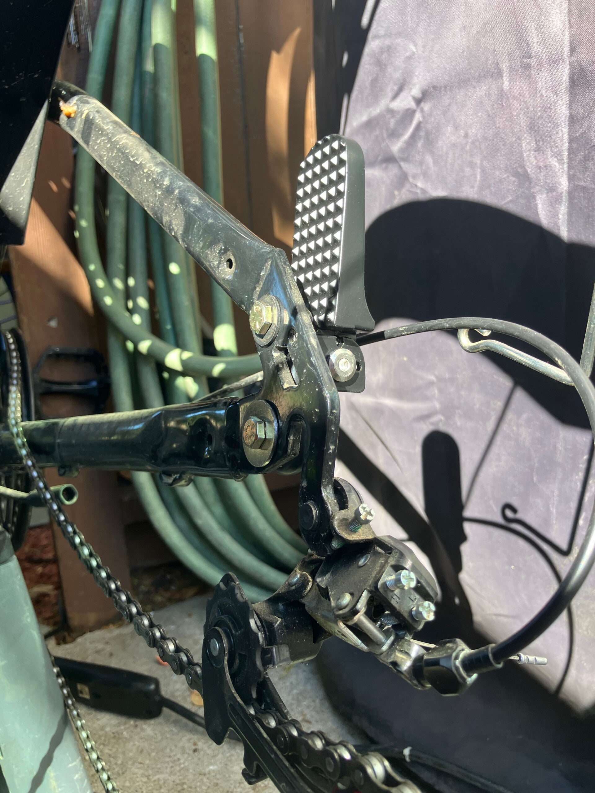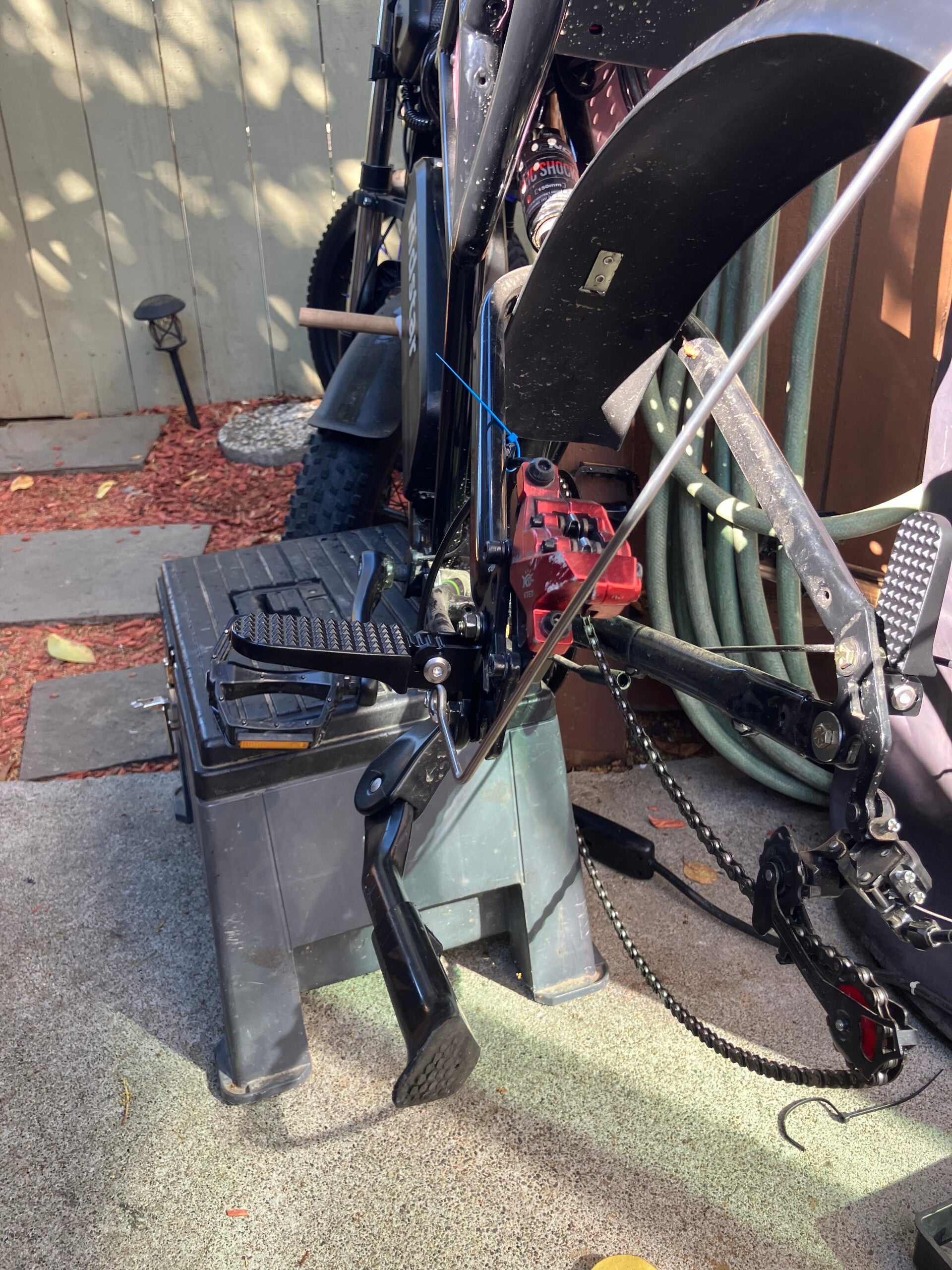 These passenger pegs bolt right on to the ridstar q20. This kit comes with all the included hardware necessary to install. Please make sure to watch my TikTok video in detail about how to install these. In order for the axle nut to fit on the axle the passenger pegs need to be slid all the way forward.